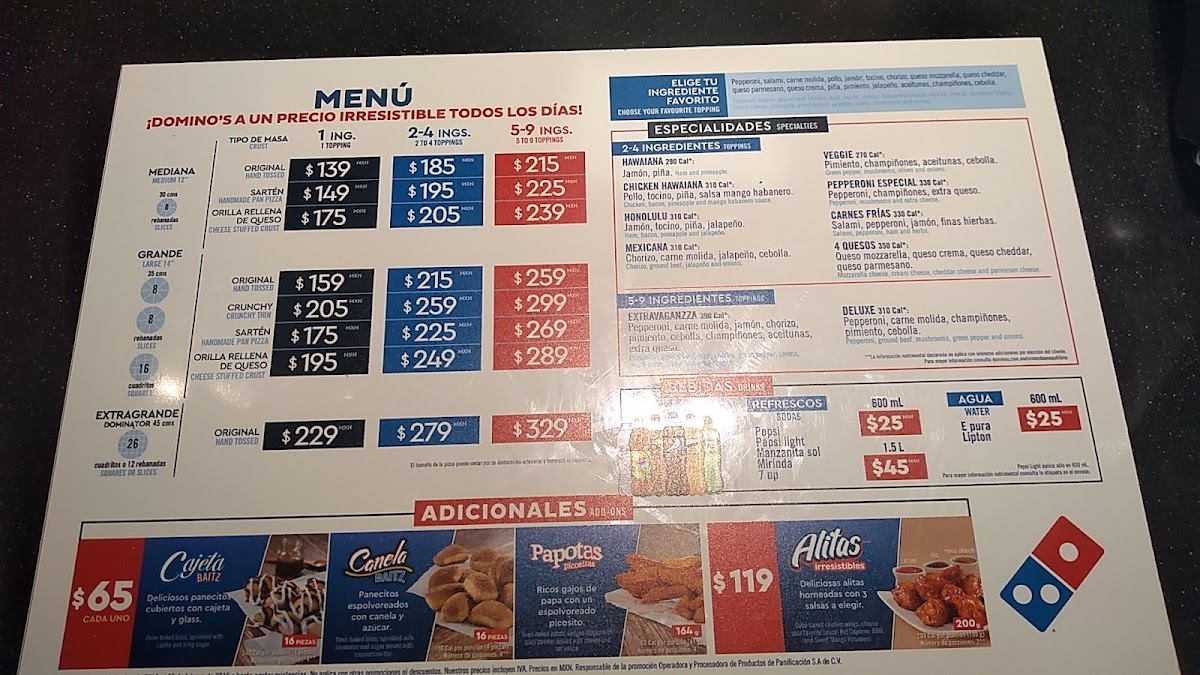 Introducing the menu at Domino's Chetumal, located at San Salvador 293 in Parque Las Casistas, you’ll discover a delightful array of options designed to satisfy every palate. Specializing in freshly baked pizzas, Domino's offers a unique opportunity to customize your pie with up to 9 ingredients for the ultimate personal touch.